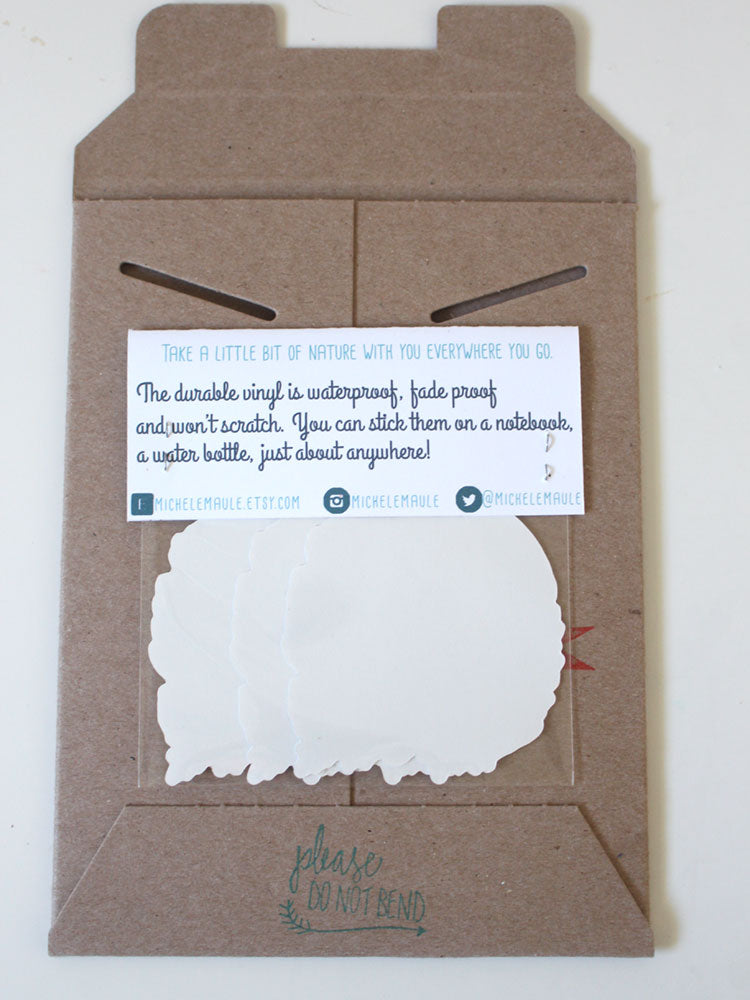 These stickers are a great addition to any sticker collection. They are illustrated by me and will make any surface just a tad bit prettier.